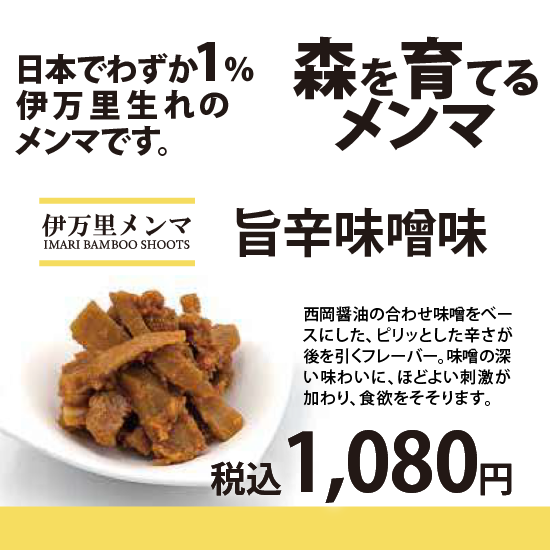 このメンマを「食べる」ことで、「放置竹林を減らす」ことに繋げます。